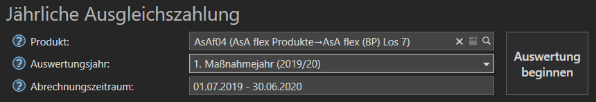 - Auswertungsjahr: Wählen Sie hier zutreffende Maßnahmejahr aus. Diese sind als Abschnitt im Auftrag angelegt worden (siehe auch "Konfiguration/Auftragsanlage").