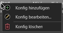 - Rechtsklicken Sie auf den Arbeitsbereich oder auf einen Eintrag und klicken Sie auf den Befehl "Konfig hinzufügen".