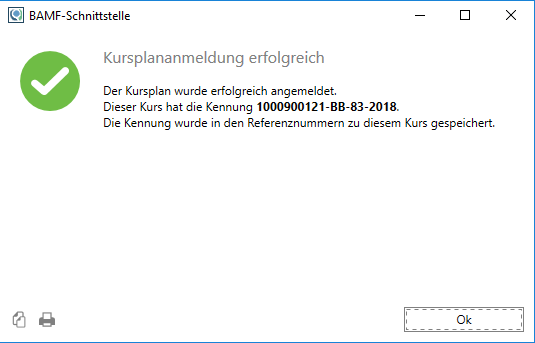 Für die Kursplanung sind nun alle erforderlichen Daten erfasst. Somit kann der Kursplan nun an das BAMF gemeldet werden. Damit erhält der Kurs dann auch eine offizielle Kurskennung.