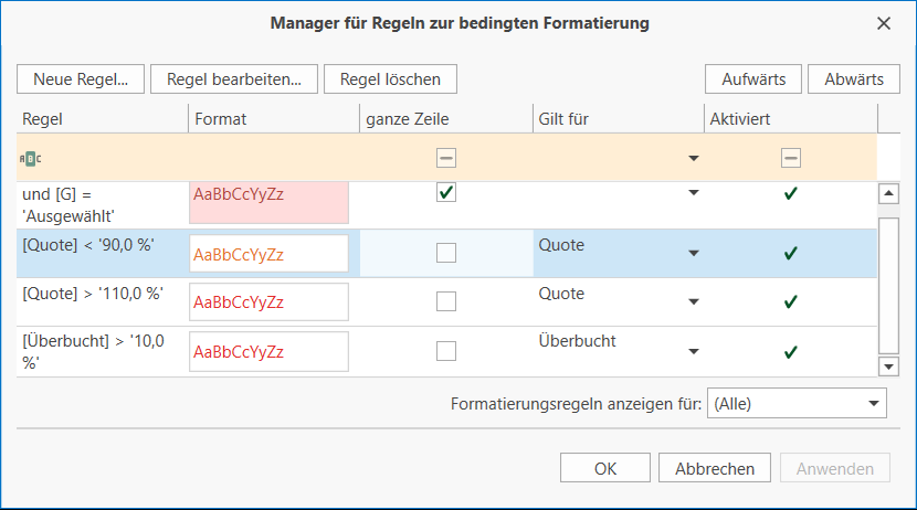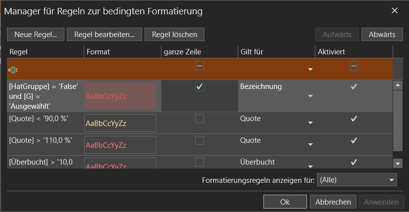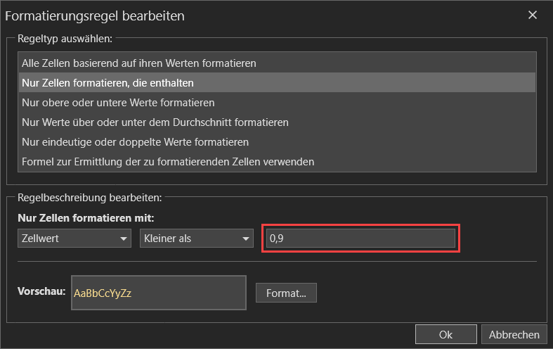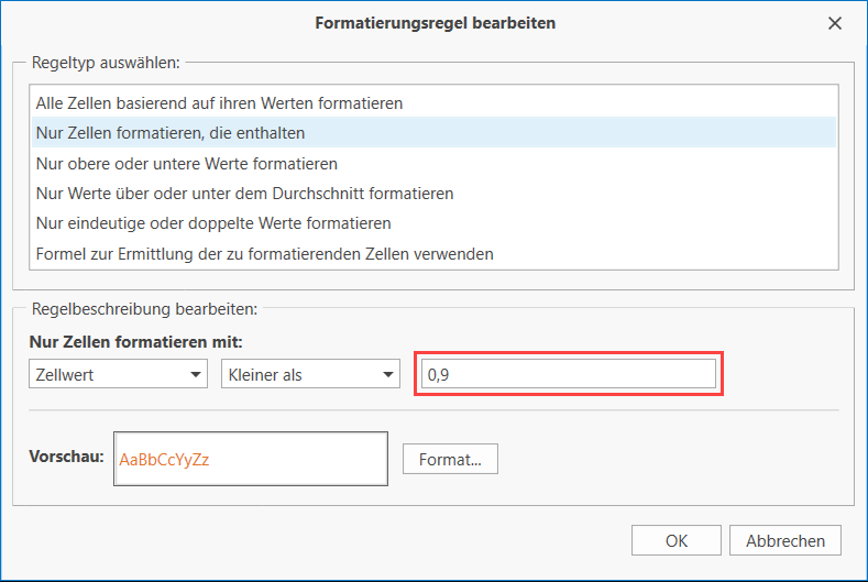 bedingten Formatierung ändern können.