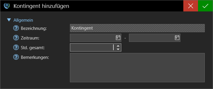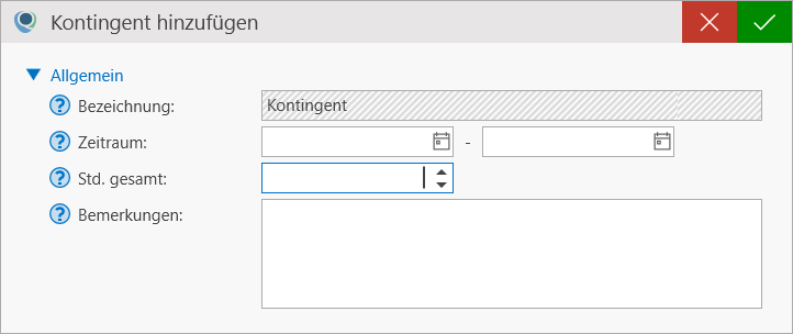 - Std. gesamt: Geben Sie hier die Stundenzahl des Kontingents an.