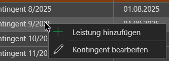 Markieren hierzu Sie alle zusammengehörigen Monate und führen Sie durch einen Rechtsklick den Befehl "Kontingent bearbeiten" aus.